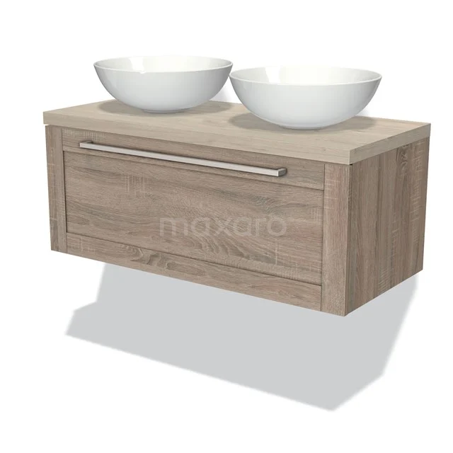 Dankzij het prachtige design is dit badkamermeubel de eyecatcher van uw badkamer. De eiken onderkast heeft een sfeervolle uitstraling en is voorzien van een wastafelblad in lichtgrijs eiken. Daarnaast beschikt het meubel over een kaderfront voor een klassieke touch. De handgreep dient u zelf toe te voegen. Deze is verkrijgbaar in verschillende kleuren en vormen.