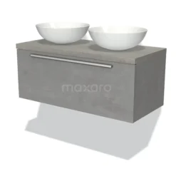 Dankzij het prachtige design is dit badkamermeubel de eyecatcher van uw badkamer. De lichtgrijs betonnen onderkast heeft een stoere uitstraling en is voorzien van een wastafelblad in grijs eiken. Daarnaast beschikt het meubel over een vlak front voor een tijdloze touch. De handgreep dient u zelf toe te voegen. Deze is verkrijgbaar in verschillende kleuren en vormen.