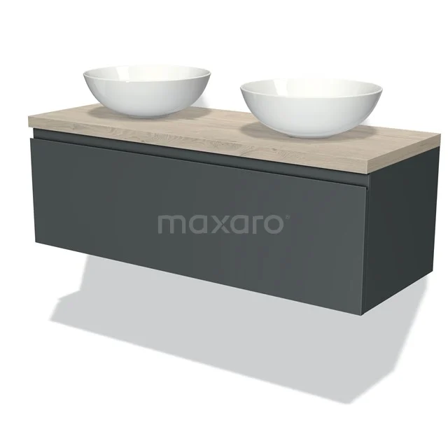 Dankzij het prachtige design is dit badkamermeubel de eyecatcher van uw badkamer. De donkergrijze onderkast heeft een moderne uitstraling en is voorzien van een wastafelblad in lichtgrijs eiken. Daarnaast beschikt het meubel over een greeploos front voor een strakke touch.