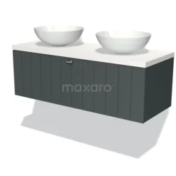 Dankzij het prachtige design is dit badkamermeubel de eyecatcher van uw badkamer. De donkergrijze onderkast heeft een moderne uitstraling en is voorzien van een wastafelblad in mat wit. Daarnaast beschikt het meubel over een lamelfront voor een landelijke touch. De handgreep dient u zelf toe te voegen. Deze is verkrijgbaar in verschillende kleuren en vormen.