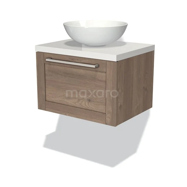 Dankzij het prachtige design is dit badkamermeubel de eyecatcher van uw badkamer. De middenbruin eiken onderkast heeft een warme uitstraling en is voorzien van een wastafelblad in hoogglans wit. Daarnaast beschikt het meubel over een kaderfront voor een klassieke touch. De handgreep dient u zelf toe te voegen. Deze is verkrijgbaar in verschillende kleuren en vormen.