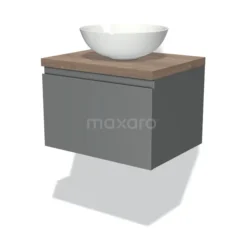 Dankzij het prachtige design is dit badkamermeubel de eyecatcher van uw badkamer. De middengrijze onderkast heeft een moderne uitstraling en is voorzien van een wastafelblad in middenbruin eiken. Daarnaast beschikt het meubel over een greeploos front voor een strakke touch.