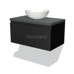 Dankzij het prachtige design is dit badkamermeubel de eyecatcher van uw badkamer. De mat zwarte onderkast heeft een industriële look-and-feel en is voorzien van een wastafelblad in donkergrijs. Daarnaast beschikt het meubel over een greeploos front voor een strakke touch.