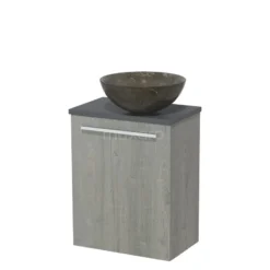 Dankzij het prachtige design is dit badkamermeubel de eyecatcher van uw badkamer. De middengrijze onderkast heeft een moderne uitstraling en is voorzien van een wastafelblad in hoogglans zwart. Daarnaast beschikt het meubel over een vlak front voor een tijdloze touch. De handgreep dient u zelf toe te voegen. Deze is verkrijgbaar in verschillende kleuren en vormen.