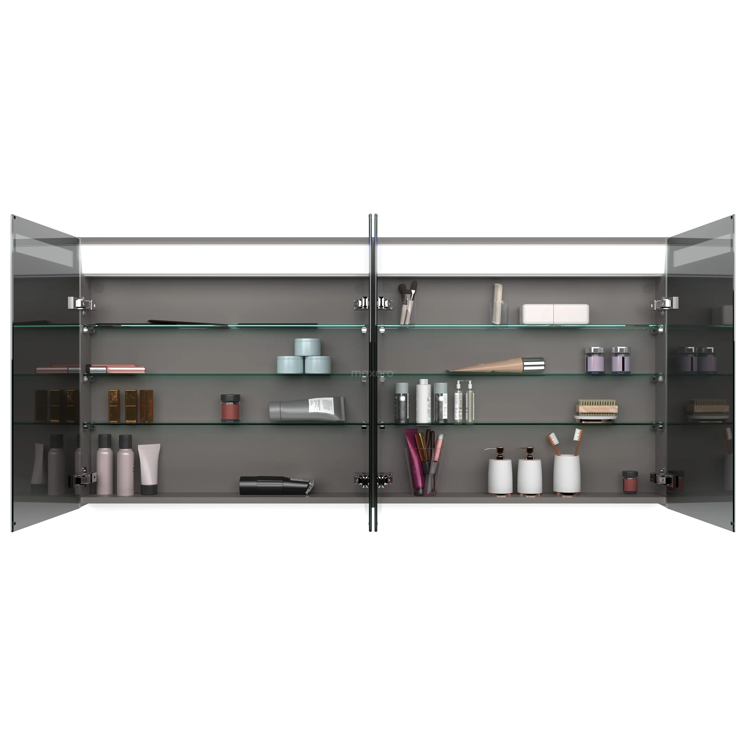 Deze spiegelkast van 160 cm uit de Modulo-serie combineert een spiegel én opbergruimte. Dankzij de geïntegreerde ledverlichting heeft u altijd voldoende licht tijdens het opmaken, scheren of tandenpoetsen. Zo verloopt uw ochtend- en avondritueel in de badkamer zeer soepel. De kast is uitgerust met 4 deuren en biedt voldoende plaats om uw toiletspullen netjes op te bergen. Bovendien beschikken de kastdeuren over softclose, waardoor ze geluidloos sluiten.