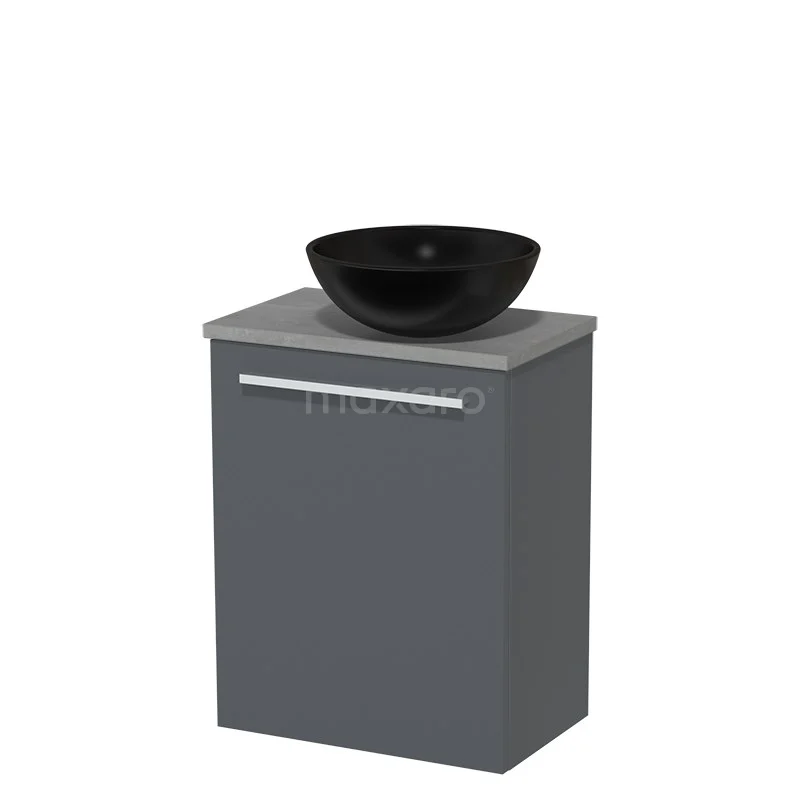 Dankzij het prachtige design is het meubel een blikvanger in de toiletruimte. De onderkast heeft een donkergrijze afwerking met een lichtgrijs beton wastafelblad.