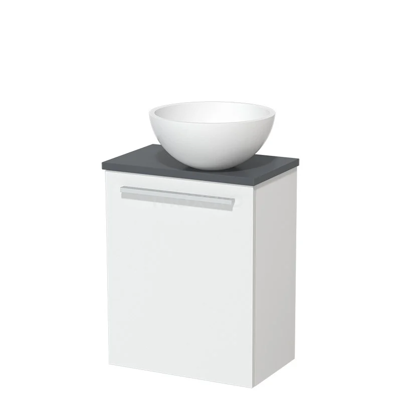 Dankzij het prachtige design is het meubel een blikvanger in de toiletruimte. De onderkast heeft een mat witte afwerking met een donkergrijs wastafelblad.