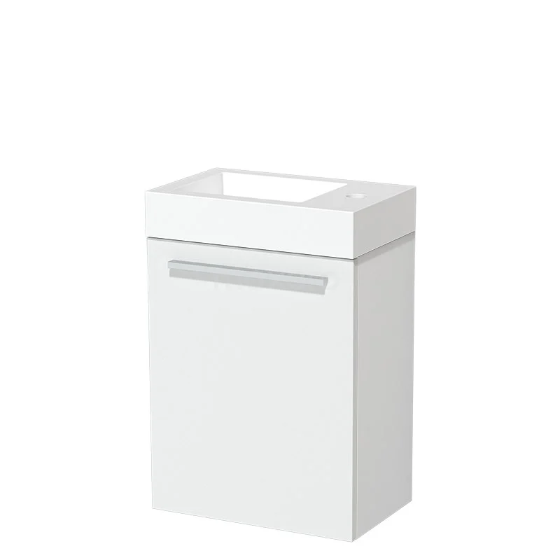 Het toiletmeubel is gecombineerd met een Meza-wastafel, waarbij het kraangat zowel links als rechts geplaatst kan worden. Dit exemplaar is uitgevoerd in hoogglans wit en kenmerkt zich door strakke, rechte lijnen. De wastafel is gemaakt van mineraalmarmer, waarover een gelcoating is aangebracht voor een mooie glans. Het materiaal is zeer onderhoudsvriendelijk. Krassen en vuil poetst u namelijk eenvoudig weg.